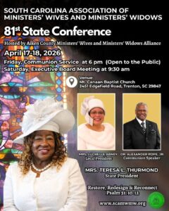 The 81st State Conference will be Hosted by Aiken County Ministers’ Wives and Ministers’ Widows Alliance.